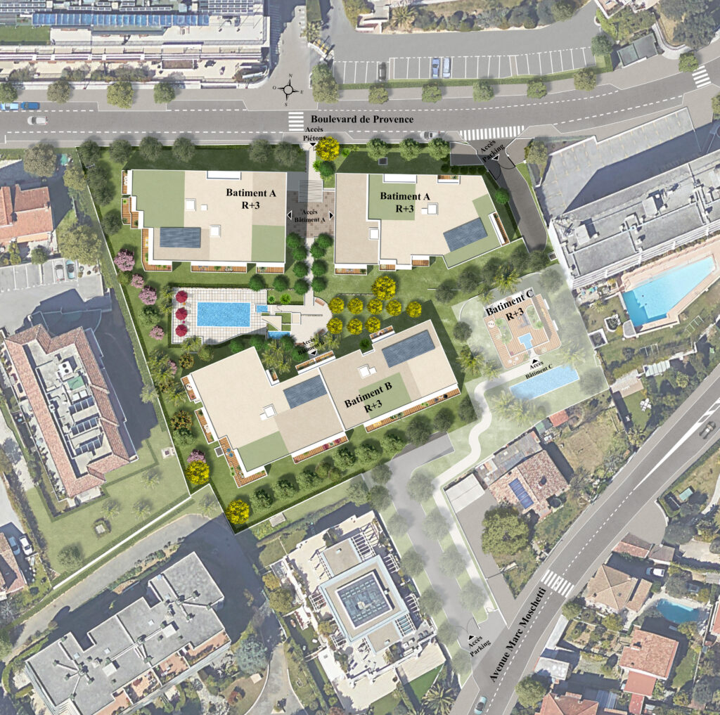 Le programme neuf Les Nouveaux Constructeurs prend place dans le quartier recherché des Jaquons, à seulement 7 minutes à pied du centre-ville. Son emplacement offre un cadre calme et résidentiel, tout en bénéficiant d’une proximité immédiate avec les commodités essentielles. Tous les services, commerces de proximité et supermarché sont accessibles à pied, tandis que le centre commercial Cap 3000 se situe à seulement 2 km. Les familles apprécient la proximité des établissements scolaires, avec une crèche, une école maternelle et un collège à moins de 500 m. Les transports en commun sont facilement accessibles, avec deux arrêts de bus à 450 m, reliant rapidement le centre commercial Cap 3000 ou la gare de Saint-Laurent-du-Var en moins de 5 minutes. La gare TER est à 1,2 km, permettant de rejoindre Nice-Ville en seulement 11 minutes. Pour les déplacements en voiture, l’autoroute A8 est à 2,1 km, facilitant l’accès aux principales zones économiques de la région. Côté loisirs et détente, le bord de mer est accessible en 7 minutes à vélo (1,6 km), offrant un cadre idéal pour les promenades et les activités nautiques. De nombreux équipements sportifs et culturels, tels que un stade, un gymnase, une maison de la danse et un centre culturel, sont également accessibles à pied. Enfin, la résidence bénéficie d’une excellente connexion avec les principaux pôles d’emploi, notamment la Plaine du Var, l’aéroport de Nice et Sophia-Antipolis. Une adresse idéale pour concilier cadre de vie paisible, dynamisme urbain et mobilité optimisée.