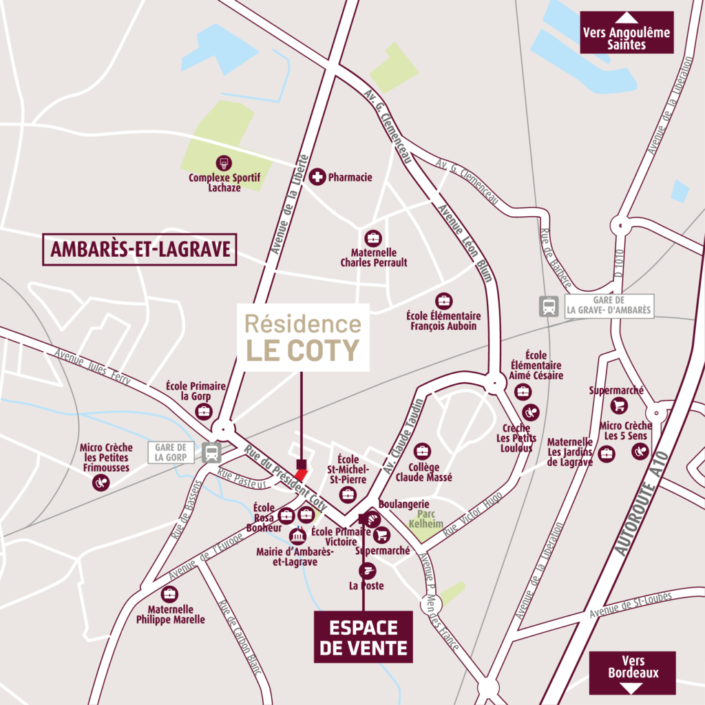 Idéalement située à quelques minutes à pied des écoles, commerces et services du centre-ville, la Résidence Le Coty vous garantit un cadre de vie paisible et pratique. Vous profitez d’un secteur résidentiel agréable, tout en ayant à proximité toutes les commodités qui facilitent l’organisation familiale. Les familles apprécieront la proximité des établissements scolaires, avec une école maternelle et élémentaire à 250 m, ainsi qu’un collège à 900 m. Côté transports, un arrêt de bus à 150 m dessert 5 lignes, et la gare de La Gorp, située à seulement 450 m, permet de rejoindre la gare de Bordeaux – Saint-Jean en 17 minutes. L’accessibilité est également optimisée grâce à l’A10 située à 3,2 km, facilitant les déplacements vers Bordeaux et les grands axes régionaux. Les espaces verts ne sont pas en reste avec le Parc Kelheim à 650 m, idéal pour les balades en plein air. Enfin, la résidence bénéficie de la proximité immédiate d’une bibliothèque et d’un pôle culturel, offrant des infrastructures de loisirs et d’apprentissage pour petits et grands. Une adresse pensée pour une vie sereine et pratique.