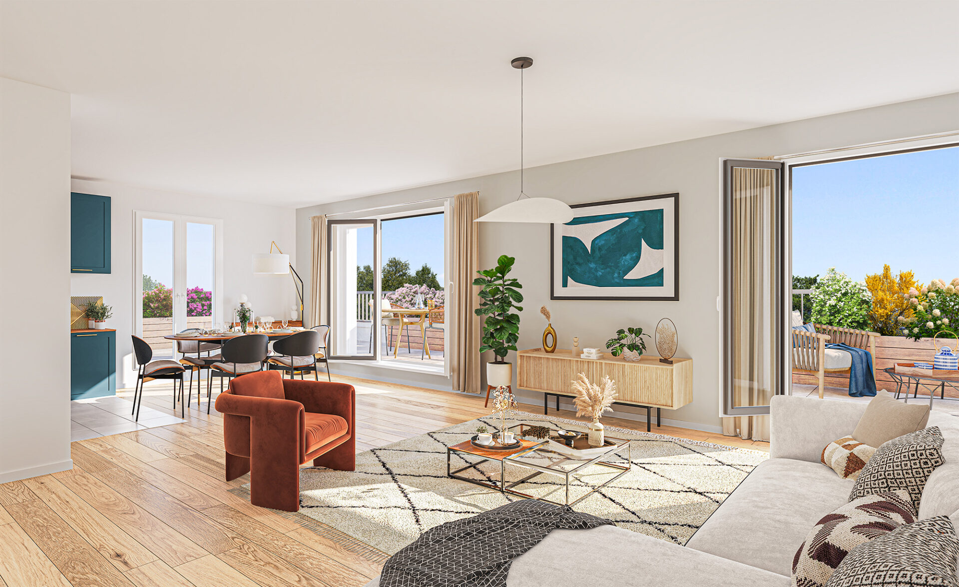 Un cadre de vie pensé pour votre bien-être. Les 54 appartements, du 2 au 4 pièces, proposent des agencements optimisés, lumineux et ouverts sur l’extérieur. Balcon ou jardin privatif prolongent les pièces de vie dans un cadre verdoyant. Certains logements bénéficient d’une double orientation ou d’un séjour d’angle, renforçant la luminosité et l’agrément au quotidien.
