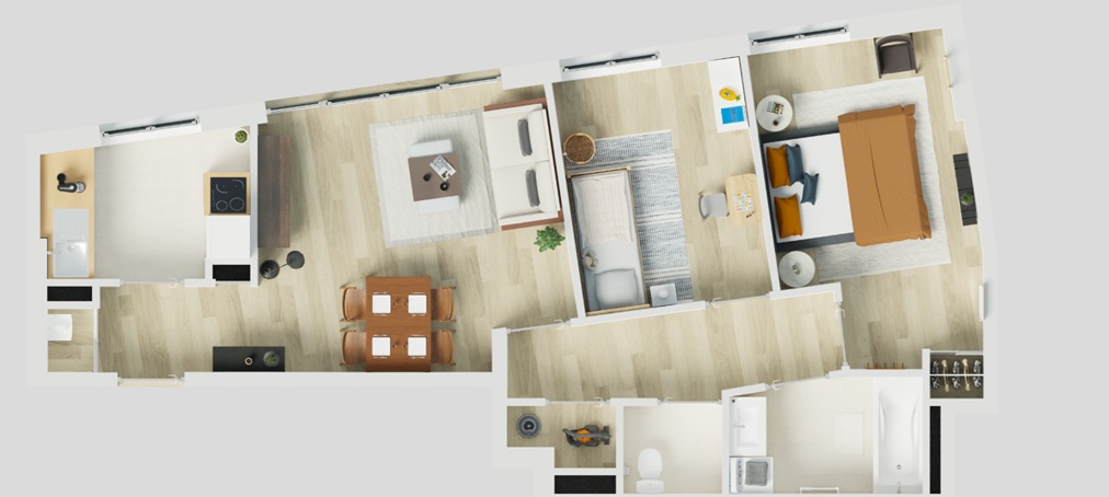 Les appartements, du 2 au 5 pièces, ont été conçus avec une attention particulière au confort et à la luminosité. Les séjours ouverts sur l’extérieur favorisent la lumière naturelle, et la plupart disposent d’un espace extérieur – jardin, loggia ou terrasse – pour prolonger la pièce de vie. En coeur d’îlot, un jardin paysager soigneusement aménagé offre un cadre apaisant et verdoyant.