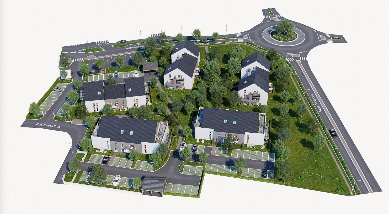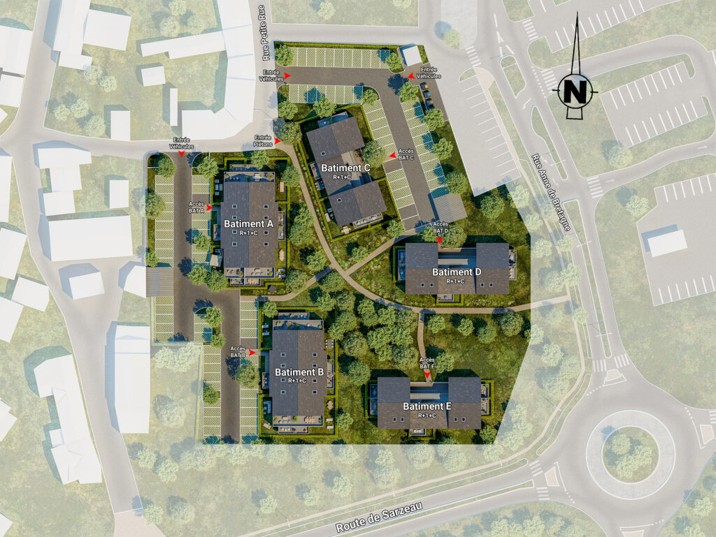 Nichée au coeur de Surzur, à deux pas du centre-bourg, la résidence Les Nouveaux Constructeurs se distingue par son architecture actuelle, inspirée du patrimoine breton. Les façades aux enduits blanc et gris, soulignées par des toitures esprit ardoise, s’intègrent avec raffinement dans leur environnement naturel et villageois.