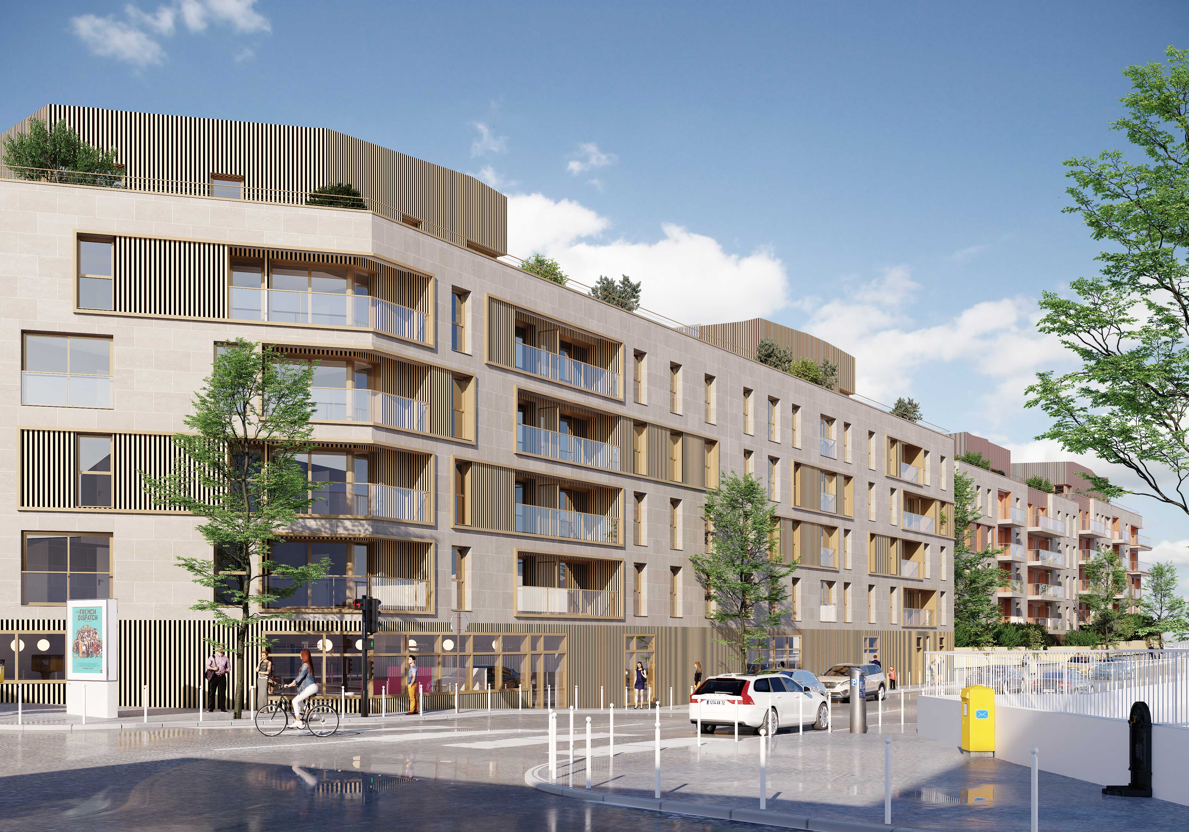La résidence adopte une écriture moderne et élégante, mêlant pierre claire, métal satiné et finitions raffinées. Répartie sur six niveaux, elle propose des façades animées de balcons, loggias et retraits en attique, créant une silhouette rythmée et aérienne. En coeur d’îlot, des jardins privatifs prolongent les logements dans une ambiance conviviale et verdoyante.