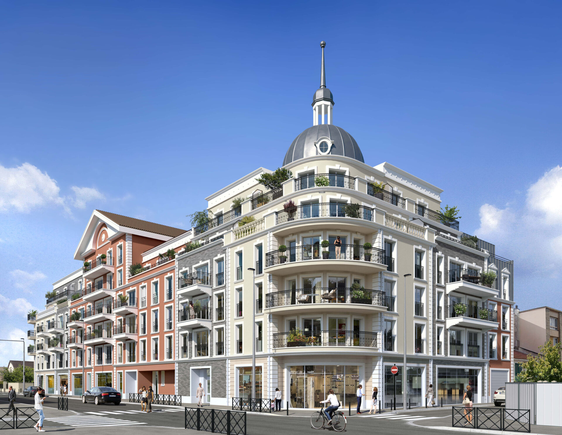 Le Dôme vous réserve un univers de vie très citadin, agréable et vivant, offrant plein de ressources à 2 pas : commerces, marché, écoles, square, parc, lignes de bus, RER B… En 2024, une future gare du Grand Paris Express (ligne 16) vous attendra aussi à 1,1 km de ce programme neuf.