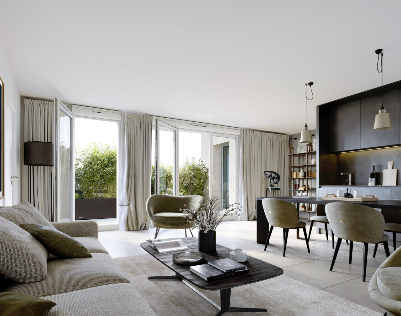À 15 km de Paris, dans un quartier résidentiel calme de l’Est parisien, la résidence se distingue par une architecture contemporaine et une intégration harmonieuse dans son environnement urbain. Signée par l’agence Girat Architectes, cette résidence adopte une silhouette élégante et moderne. L’architecture marie des matériaux de qualité avec des finitions raffinées, créant ainsi un cadre de vie à la fois esthétique et fonctionnel.
