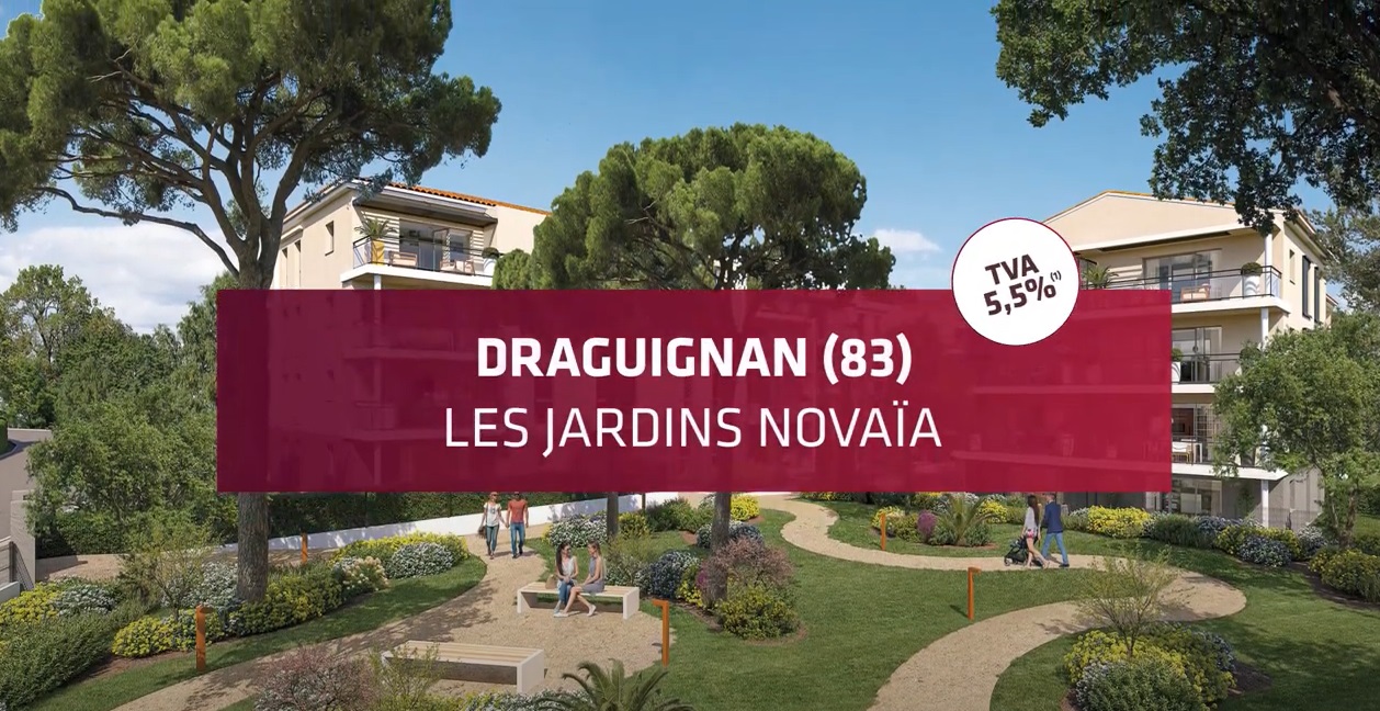 RESIDENCE ELIGIBLE A LA TVA A 5,5% – Située à seulement 2 km du centre-ville de Draguignan, la résidence Les Jardins de Novaia vous accueille dans un quartier dynamique et bien desservi. À proximité, vous trouverez des écoles, des commerces et des équipements sportifs accessibles à pied. Au coeur de la résidence, un jardin méditerranéen paysager offre un cadre apaisant et convivial. Conçu pour favoriser les échanges et le bien-être, cet espace vert invite à la détente et au partage entre résidents. Conforme à la norme RE 2020, le programme allie confort moderne et respect de l’environnement.